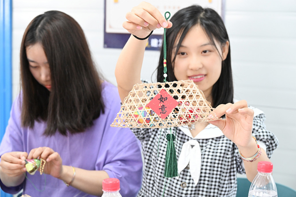 在包粽子活动中,大家纷纷展现自己的手艺,糯米、红枣、鲜肉等食材在巧手中变成了一只只精美的粽子。随后众人开始制作中草药舒筋按摩锤、五彩绳、香囊竹编挂件传统“养生”手工三宝。一把看似普通却蕴含无限奥妙的舒筋按摩锤。采用天然中草药精心制作,通过按摩的方式,促进身体的血液循环,缓解肌肉疲劳,舒缓紧张情绪。五彩斑斓的绳子,不仅仅是一种装饰品,更有祈福纳吉的美好寓意。香囊竹编挂件是一种融合传统工艺与现代审美的装饰品,竹编则寓意着“竹报平安”、“节节高升”等美好愿望。